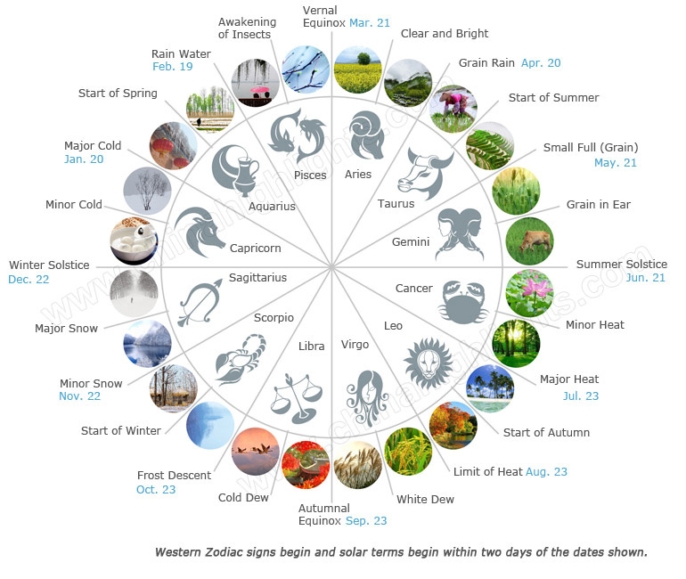 The 24 solar terms, based on the sun's position in the zodiac, were created by farmers in ancient China to guide the agricultural affairs and farming activities. The 24 solar terms reflect the changes in climate, natural phenomena, agricultural production, and other aspects of human life, including clothing, food, housing, and transportation. The 24 solar terms play important roles and have greatly influenced people's basic needs in life, and they still have an important function nowadays.